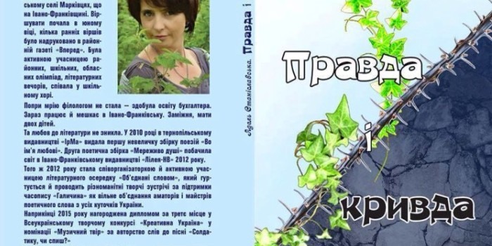 Цей вислів мною сказаний недаремно. Саме на нього мене побудила збірка оповідань Адель Станіславської “Правда і кривда”. Тільки-но взявши книгу до рук, перше, що вразило -ілюстрація палітурки. Половина білого відділяється від чорної частини гілкою зеленої едери переплетеної із гострим терням, так само, як цвітуча правда перплетена із жорстокою кривдою.