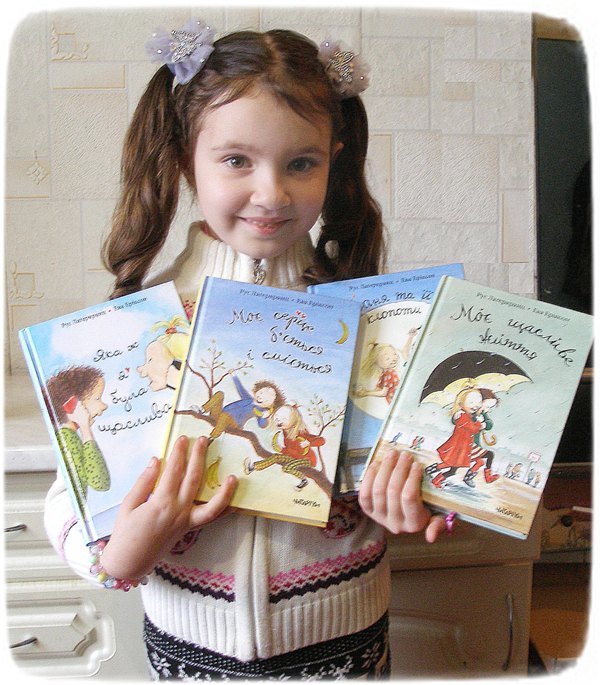 А ось чотири книжечки, які Яся вирішила прочитати «повністю сама». Написала їх шведська письменниця Рус Лаґеркранц, оформила шведська художниця Ева Еріксон, українською мовою переклала також Галина Кирпа. Я кажу про «Моє серце б’ється і сміється», «Моє щасливе життя», «Яка ж я була щаслива» і «Даня та її клопоти».