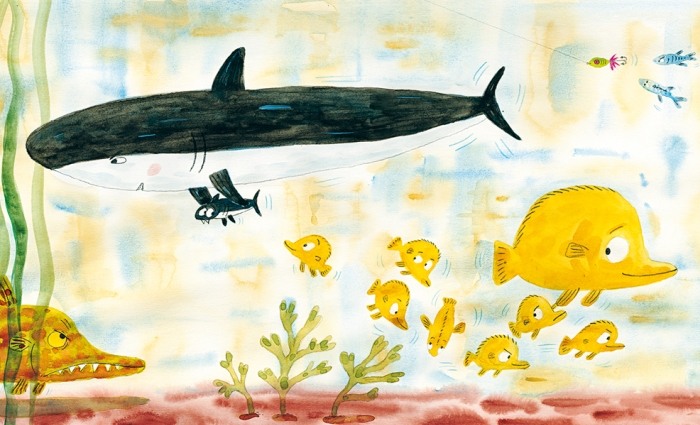 Це історія мами-акули й дитини-акуленяти. З’ясовується, дитина-акула — така сама допитлива й непосидюча, як і будь-яка інша дитина. Їй хочеться гратися, про все дізнатися, все дослідити. І як же мамі не переживати за своє дитя, коли воно й хвильки не може пробути на місці?