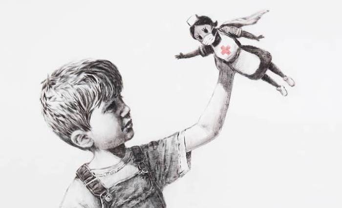 Британський художник, відомий під псевдонімом Бенксі, створив нову картину, присвячену медичним працівникам, що допомагають людям під час коронавірусної епідемії.