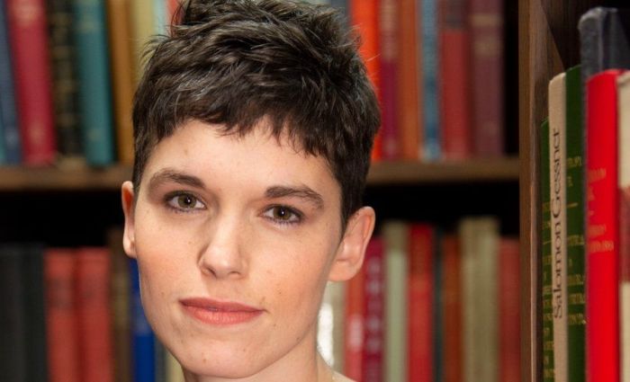 Кім Шервуд 32 роки, вона викладає в Університеті Західної Англії. 2018 року одержала премію Бата (Bath Novel Award) за дебютний роман «Заповіт» (Testament).