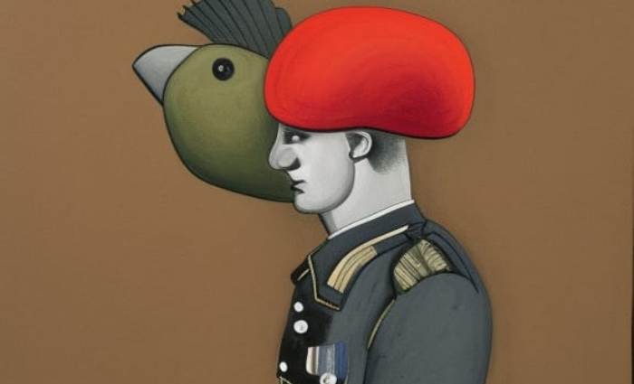 і вийшов із казарми з птахом на голові