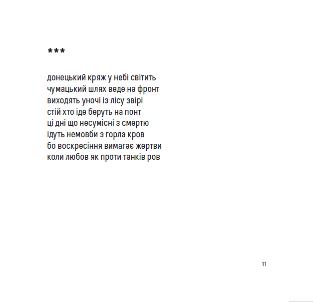 У цій книжці ви маєте нагоду прочитати вірші Артема Антонюка, написані на фронті російсько-української війни у 2022 році. Суто воєнні мотиви і теми, патріотична спрямованість тут поєднуються з чорним гумором, іронією, нестандартним і гострим поглядом на світ та неочікуваною побудовою образів і метафор. Артем Антонюк — також автор книжки «Торба», що побачила світ 2007 року, лауреат літературного конкурсу видавництва «Смолоскип».