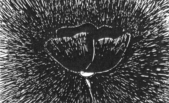 Чільне зображення: Марія Гончаренко. Зчорнілий мак у скам’янілому просторі. Папір, туш (фрагмент).