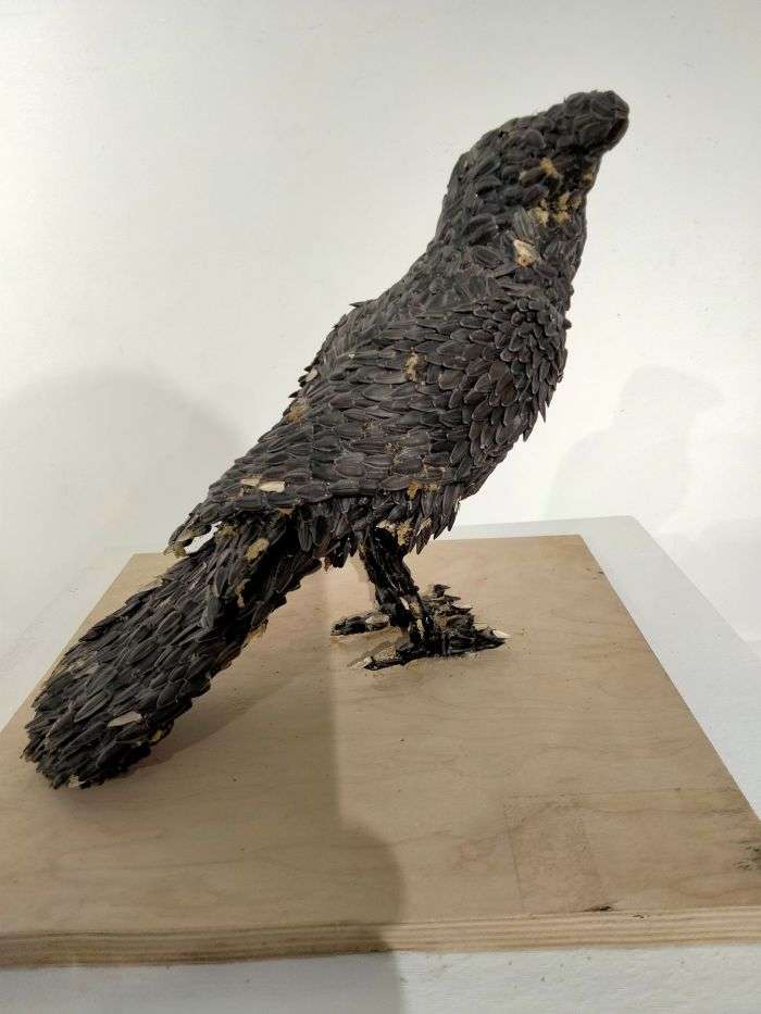 «Молодий ворон». Статуетка Оксани Солоп, зроблена із соняшникового насіння