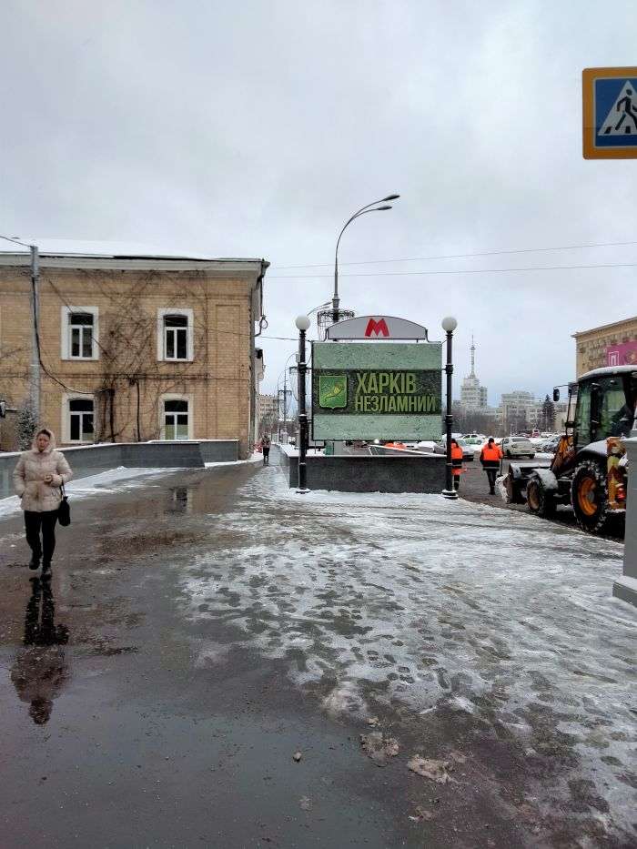 Людей на вулицях небагато, зате в метро пасажирів — повні вагони. Можливо, через те, що інтервал між поїздами чималий як для мене, киянина, — 7-8 хвилин. А ще, мабуть, тому, що проїзд безкоштовний — як і у всьому міському транспорті Харкова. На деяких станціях — вернісажі дитячих малюнків. Під егідою мера Ігоря Терехова напередодні свят проводили конкурс, а метрополітен став майданчиком для залучення масового глядача.
