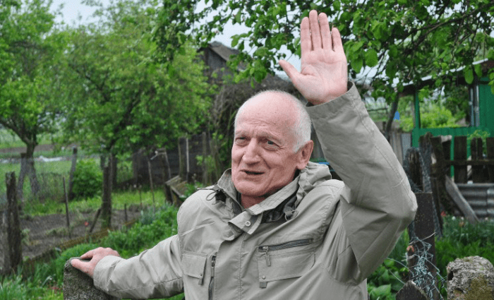 На світлині: Олесь Рязанов біля рідної хати в селі Селець